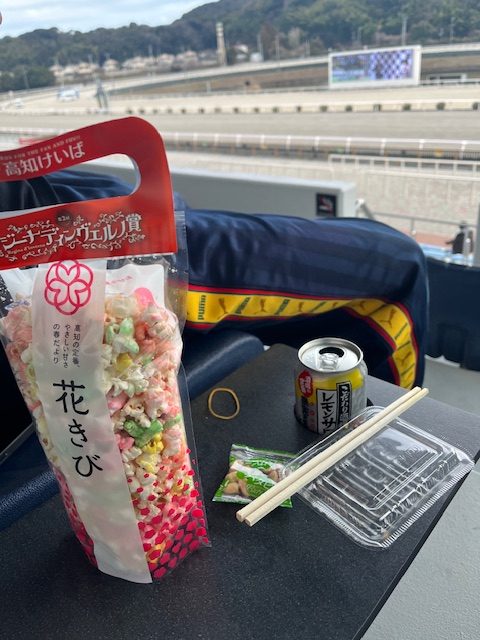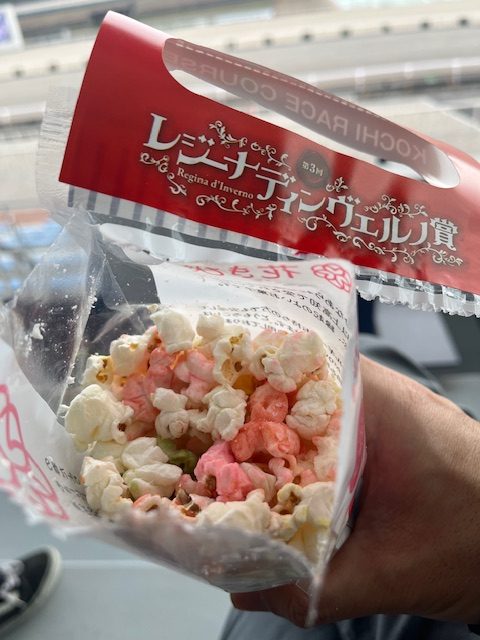 袋を開けてすぐ食べられる軽いポップコーン「花きび」は、競馬観戦のおともにもぴったりです。